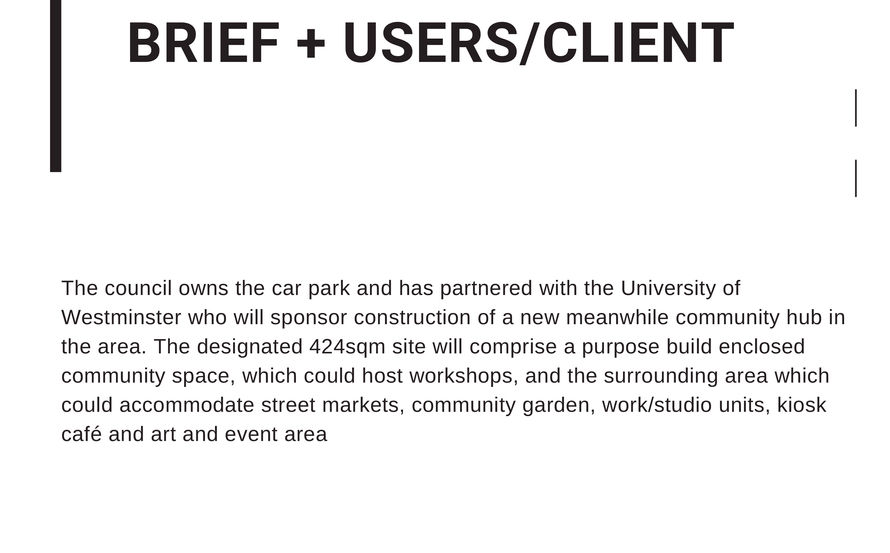 The council owns the car park and has partnered with the University of Westminster who will sponsor construction of a new meanwhile community hub in the area.The designated 424sqm site will comprise a purpose community space, which could host workshops, and the surrounding area which could accommodate street markets, community garden, work/studio units, kiosk café and art and event area.